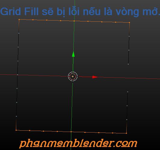 Grid Fill nó chỉ hoạt đông cho vòng đóng thôi, vòng mở nó sẽ bị lỗi tại vì Grid Fill nó có nhiêm vụ điền vào chỗ trống từ 2 đầu, nhưng nếu là vòng mở thì sẽ có thêm một lỗ hổng nên không đủ vertice để fill, nó vừa điền 2 đầu vừa điền luôn cái lỗ kia thì sao mà không có lỗi!